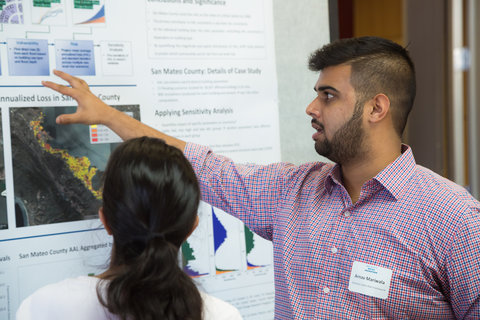 The water theme encouraged a variety of project proposals, from policy and hardware to sustainability and disaster risk. Teams of up to four members generated ideas based on a series of talks during ‘water bootcamp’ and workshops during the Hackathon kickoff Oct. 6 or fashioned projects as continuations of previous projects. The Stanford Urban Risk Framework (SURF) team formed their project based on previous research. The hackathon supported their development of an open-source tool aimed at helping decision makers estimate the financial and infrastructure risks associated with natural hazards and sea-level rise.