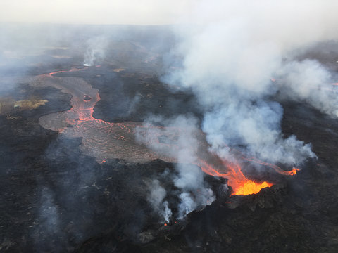 Lava erupts from fissure 22 on the morning of May 24. Photo credit: USGS/M. Patrick