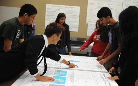 High school students put the finishing touches on posters that summarize their summer research findings for presentation in December at a major scientific conference, the American Geophysical Union Fall Meeting in San Francisco.